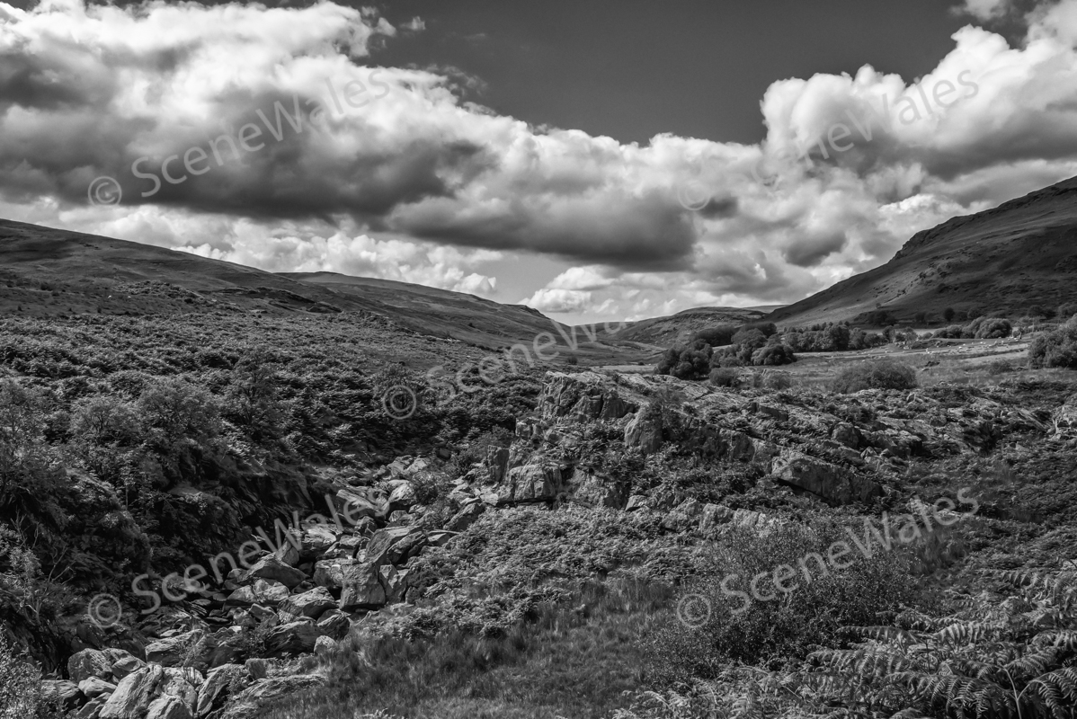 Experience the serene beauty of a dry river bed in the Elan Valley with this captivating photographic print.